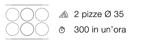 Il modello TL 105L ha un nastro di 50 cm per cuocere anche pizze maxi. Se vuoi una maggiore produttività, scegli il modello TL 108L che ha un nastro largo 80 cm e permette di collocare (affiancate) 2 pizze da 35 cm.