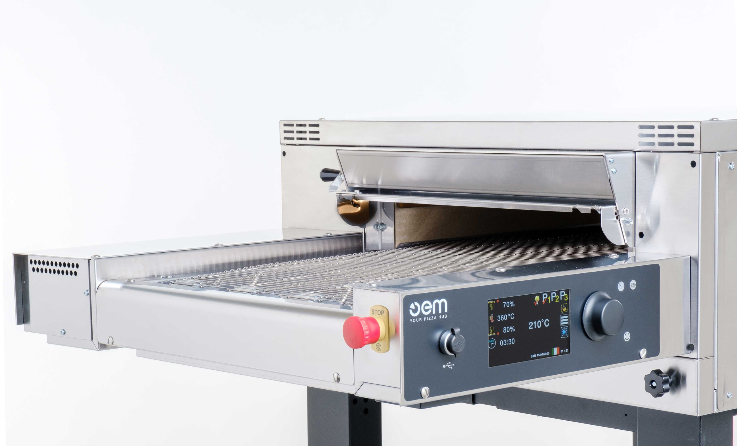Il nastro di carico (da 50 oppure da 80 cm, a seconda del modello) permette di sfornare le pizze della dimensione voluta e di cuocere o scaldare prodotti di gastronomia.