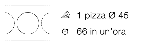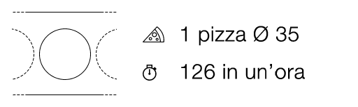 Grazie alla ventilazione forzata, garantisce una produttività media di 63 pizze/ora di diametro 30-35 cm.