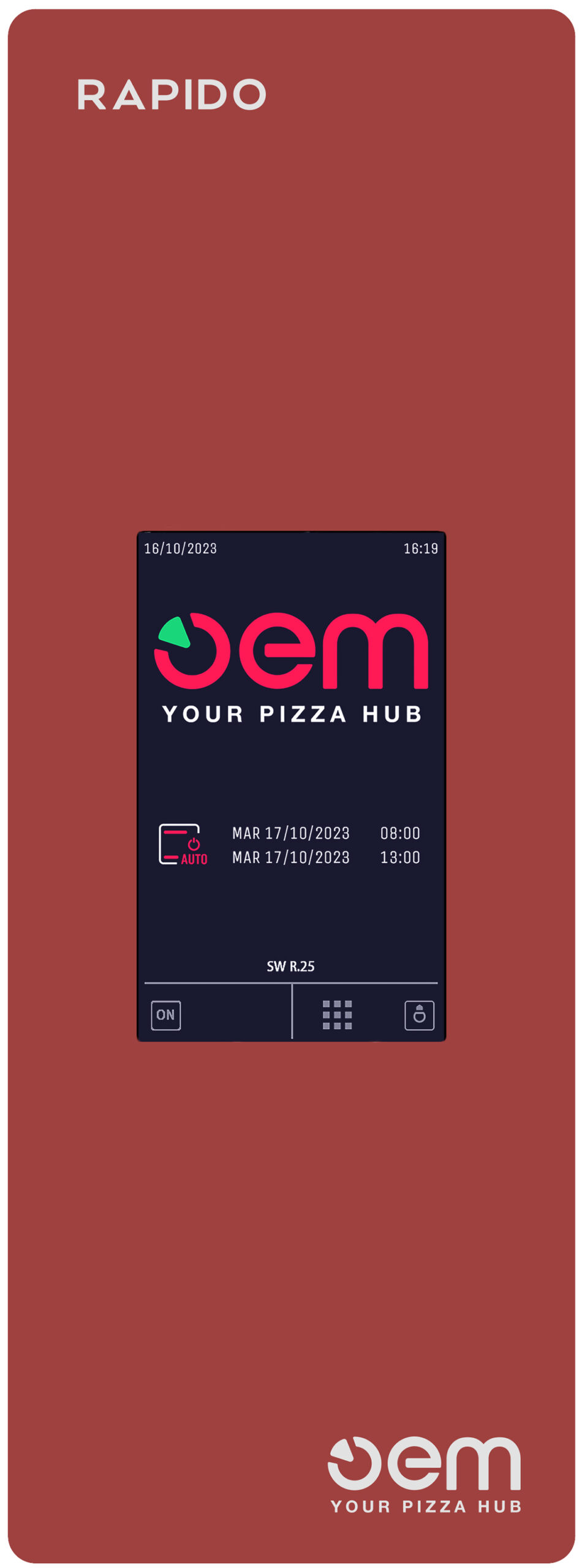 Grazie all’innovativa tecnologia OTC (OVEN Thermo Control) di OEM, presenta le funzioni di Assistenza alla Cottura e Primo Riscaldamento; se la prima adegua le prestazioni del forno in funzione della produttività richiesta, il secondo ottimizza la fase di riscaldamento ad ogni prima accensione.