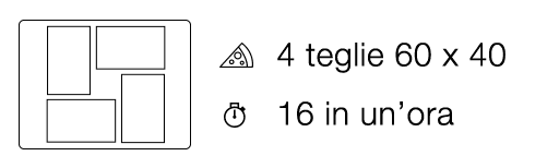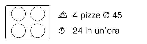 Perfetto per una produzione intensa. Il modello più grande cuoce contemporaneamente 9 pizze Ø 35 cm, 4 pizze Ø 45 cm oppure 4 teglie 60×40 cm.