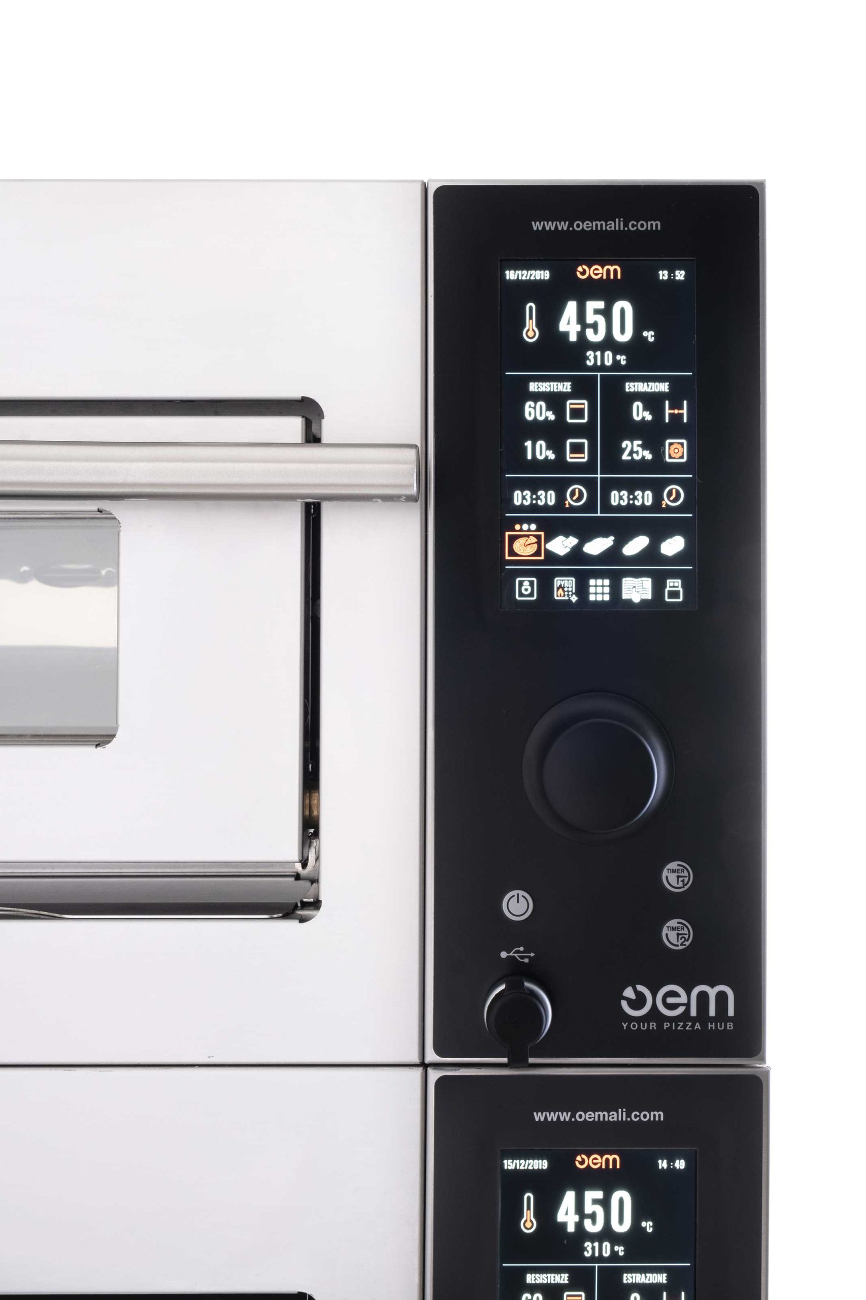 Il pannello di controllo, di facile accesso ed estremamente intuitivo, ti permette di gestire tutto con semplicità. La temperatura è sempre visibile in ogni momento sul grande display mentre con un semplice pomello scroller puoi decidere i parametri di cottura e controllare tutti i valori impostati. Inoltre, grazie alla funzione di autoaccensione automatica 2 volte al giorno, ti permette di pianificare il lavoro e risparmiare energia.