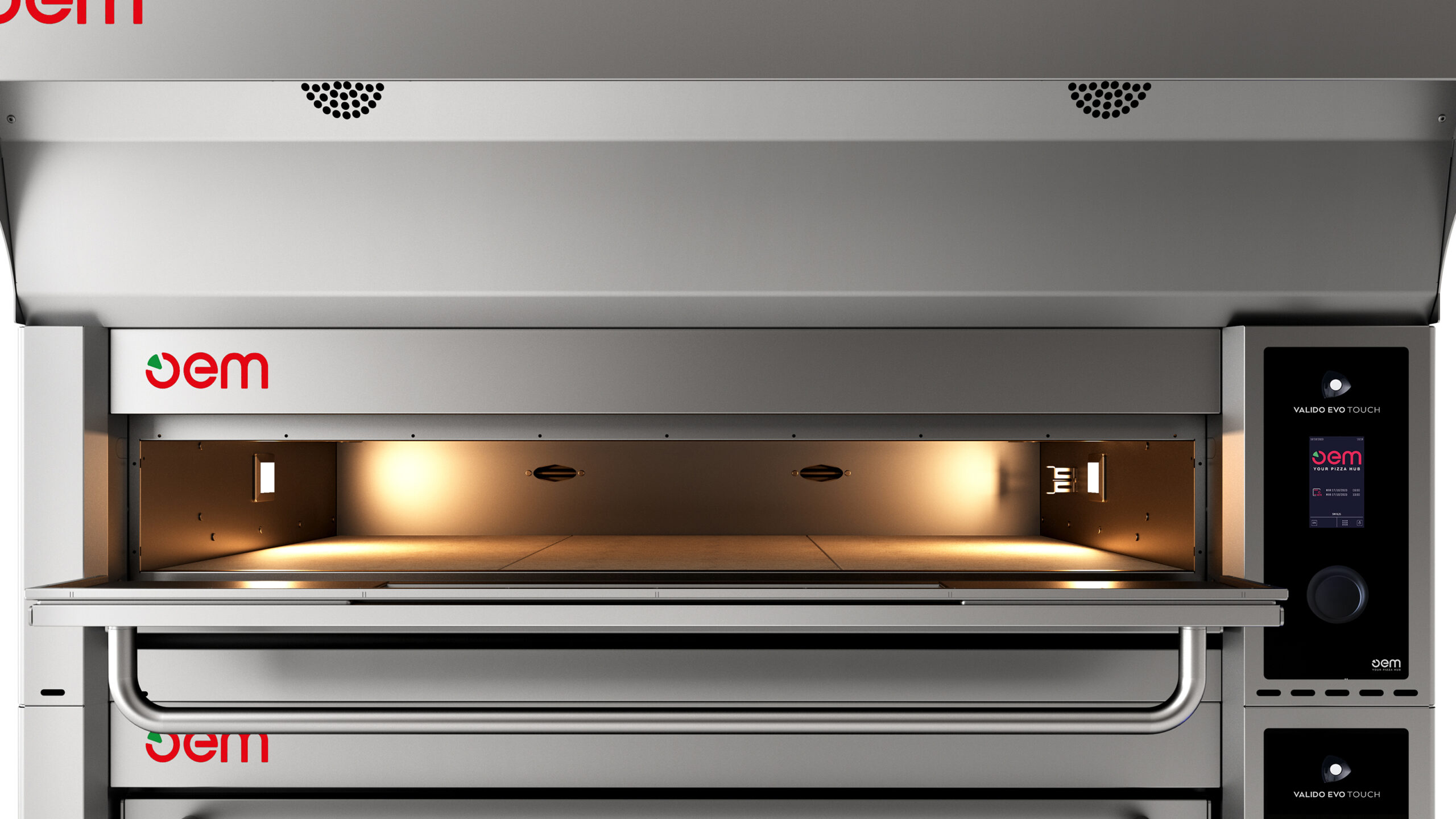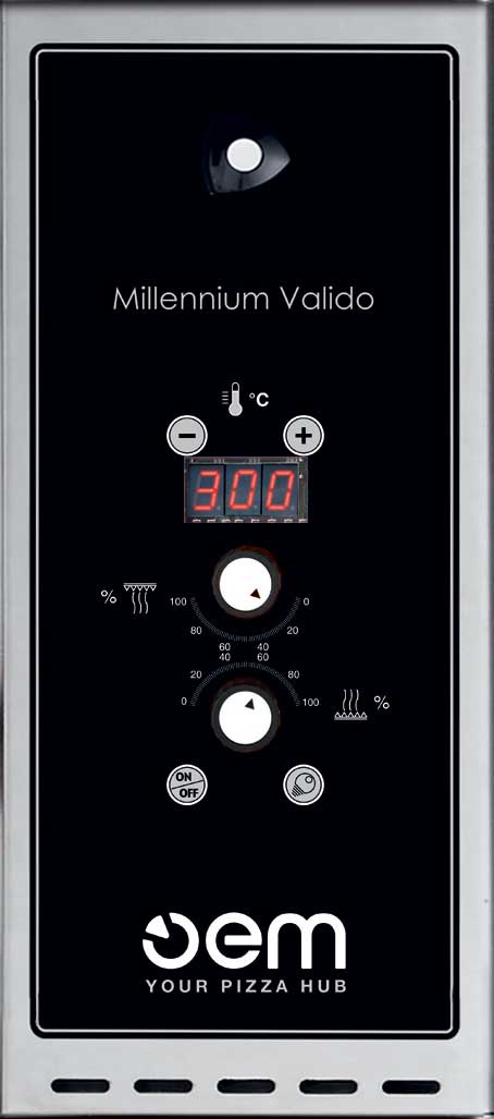 Design moderno e rigoroso per un forno dalle grandi performance. Ti permette di realizzare una cottura tradizionale sia a mattone sia in teglia. Il pannello di controllo digitale regola indipendentemente le resistenze di cielo e platea di 20 posizioni (tuning 5%). È dotato di un comando camino manuale per un’esatta espulsione dei fumi.