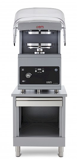 Das Gerät bereitet perfekte Böden mit oder ohne Rand und einem Durchmesser von 30 bis 50 cm zu. Es können bis zu 300 Böden pro Stunde produziert werden.